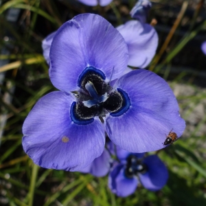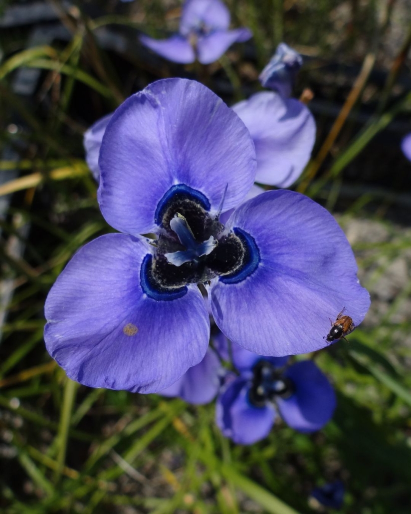 Having showy, mauvish blue to deep blue spring blooms,