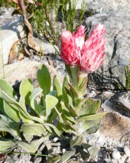 Leaves are felt-textured, grey, becoming smaller up the stem